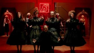 In Stricklands Werken (so vermute ich nach der Sichtung der Hälfte seiner Spielfilme) geht es weniger darum eine bis ins kleinste Detail ausgearbeitete Geschichte zu erzählen als vielmehr um die Erzeugung einer surrealen, ästhetisch auffallenden Stimmung sowie merkwürdige und absurde Vorkommnisse, welche die Figuren erleben. Inspiriert wurde der 48jährige zum vorliegenden Werk durch die Besuche in einem Bekleidungshaus während seiner Kindheit. Viele absolut normale Abläufe in einem solchen Kaufhaus dürften aus der Perspektive eines Kindes geheimnisvoll und unerklärlich sein. Strickland bebildert das, was sich ein Kind über die Vorgänge hinter den Kulissen eines Kaufhauses mit Schaufensterpuppen, kleinen Lastenaufzügen und anderen Besonderheiten vorstellen mag und spinnt dies im Stile eines düsteren Märchens weiter. Das Kleid kann seinem Träger Glück und Erfolg bringen, doch hat es leider einen ziemlich starken eigenen Willen. Die Verkäuferinnen wirken mit ihren hochgesteckten Haaren, den sehr hell geschminkten Gesichtern und den schwarzen Kleidern wie Hexen aus der osteuropäischen Sagenwelt. Das Mode-Kaufhaus wird hier zum mystischen Ort, wobei Shoppen eben auch zum Albtraum werden kann.