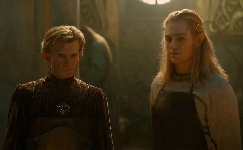 Was Sauron betrifft wirft man zu Beginn von Season 2 einen Blick zurück und zeigt die Ereignisse von der „Ermordung“ seiner sterblichen Hülle (gespielt von Jack Lowdon) durch Adar (Sam Hazeldine ersetzt den leider wegen kreativer Differenzen ausgeschiedenen Joseph Mawle) und die Orks, seine Existenz im Schatten für lange Zeit, bis zur Übernahme des Körpers von Halbrand. Positiv überrascht hat mich die Metamorphose zu Annatar, wenngleich Darsteller Charlie Vickers mit der blonden Perücke vielleicht etwas albern aussieht, und die Figurendynamik mit den zwischen Pflichtgefühl und Schöpfungsdrang hin- und hergerissenen Elbenschmieden Celebrimbor. Die Tragik von letzterem wird durch eine starke Performance von Charles Edwards eindrucksvoll untermauert. Für mich das schauspielerische Glanzlicht der ganzen Staffel.