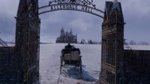Zu den Stärken in del Toros Werken gehört ein detailreiches und verspieltes Setdesign, welches er auch im vorliegenden Film zelebriert. Das titelgebende Anwesen der Sharpes (eigentlich Allerdale Hall) funktioniert als weiterer Hauptcharakter. Durch den allmählichen Verfall wird das große Domizil nicht nur von der gnadenlosen Witterung in Mitleidenschaft gezogen sondern versinkt auch langsam im roten Lehm, auf dem es gebaut wurde. Dadurch entwickelt der Schauplatz ein unheimliches Eigenleben. Hinzu kommen freilich die wörtlich zu nehmenden Geister der Vergangenheit, deren Präsenz in Allerdale Hall eine zentrale Rolle spielt. Del Toro und sein Team inszenieren die ganze Szenerie stimmungsvoll und unheimlich, ohne jedoch zu dick aufzutragen. Was die reine Performance angeht so liefert Crimson Peak wirkungsvoll aufgemachten Gothic-Grusel.