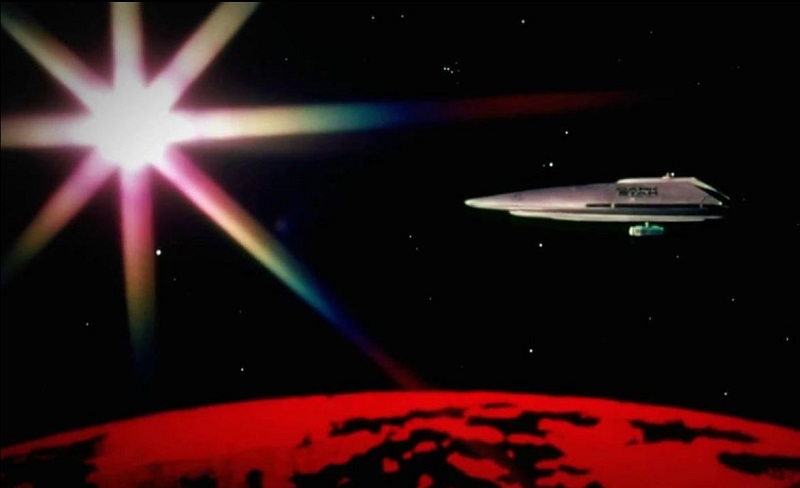 In mancher Hinsicht leistete Dark Star wahre Pionierarbeit. Erstmals wird in einem Film das Wort „Alien“ für ein außerirdisches Wesen benutzt, das in der deutschen Synchronfassung mit „Exot“ übersetzt wurde. Inspiriert durch die berühmte „Star Gate“-Sequenz aus 2001 erfand Dan O’Bannon die visuelle Umsetzung des Hyperraum-Flugs, welche später ein gewisser George Lucas für seine Sternensaga verwenden sollte. Während Carpenter zum Synoym für düstere Genre-Kost im Kino avancierte drückte sein Co-Autor, der hier auch als trotteliger Sergeant Pinback zu sehen ist, dem Sicfi-Horror ebenso seinen Stempel auf. Auf Basis des Außerirdischen hier (einfach ein Wasserball in Erdbeer-Optik mit Füßen, genial!) entwickelte O’Bannon das Konzept für den Kultklassiker Alien: Das unheimliche Wesen aus einer fremden Welt (1979) von Ridley Scott. Zwischenzeitlich hatte er an der legendär-gescheiterten Dune-Verfilmung von Alejandro Jodorowsky gearbeitet. Besonders loben muss ich in der deutschen Fassung die dezent gelangweilt klingende Computerstimme des Raumschiffes.
