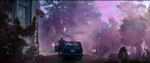 Wie soll man das von Lovecraft so gekonnt erzeugte, unbeschreibliche Grauen umsetzen? Und wie die titelgebende Farbe? Wie auch Huan Vu entschied sich Stanley für Magenta, vor allem weil es dabei nicht um eine Spektralfarbe handelt. Die Auswirkungen der gewaltigen außerirdischen Kräfte wird hier als gekonnte Mischung aus psychedelisch-audiovisuellem Overkill und monströsem Creature- bzw. Body-Horror inszeniert. Hinzu kommt ein mehr als unheilschwangerer Score des kanadischen Jazzmusikers und Komponisten Colin Stetson, die mich in Teilen an die Musik zur Serie Dark von Ben Frost erinnert hat. Neben der gekonnten ästhetischen Umsetzung wirkt auch die Übertragung des Stoffes in die Gegenwart recht gelungen, inklusive ein paar gekonnter Zitate/Anspielungen (der Hydrologe heißt Ward Phillips).