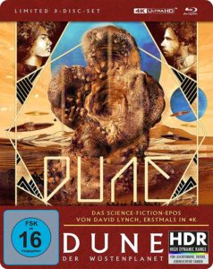 Dune – Der Wüstenplanet wurde sowohl in der Kinofassung als auch der erweiterten TV-Version in verschiedenen Ausführungen auf DVD und BluRay veröffentlicht. Am 26. August 2021 erscheint zudem eine 4k-Ultra-HD-Fassung auf BluRay (siehe Bild oben). Der Film ist derzeit Teil des Angebots von Netflix und mit Zusatzkosten bei weiteren Streaminganbietern verfügbar.