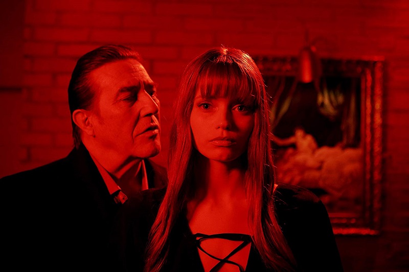 Die wirkliche Stärke von Elizabeth Harvest liegt wohl er in der Aufmachung. Die von Model Abbey Lee (Mad Max: Fury Road, The Neon Demon) verkörperte Protagonistin wird als überirdisch schön und perfekt dargestellt (wobei ich persönlich Frauen mit sichtbarem Untergewicht optisch nicht ansprechend finde). Mithalten kann da eigentlich nur noch das in jeglicher Hinsicht stylish eingerichtete Haus, das als im Grunde einziger Schauplatz der Handlung dient. Solch eine Kombination aus stimmungsvoller Opulenz sowie Design bzw. Architektur an der Schnittstelle zwischen Funktionalität, Sterilität und purer Ästhethik gab es in ähnlicher Form bereits in Alex Garlands Regiedebüt Ex Machina (2014), dessen Erfolg es Gutierrez ermöglichte nach zehn Jahren endlich den vorliegenden Film zu drehen. Mit intensiver Farbgebung und teils auch durch die musikalische Untermalung erinnert die Inszenierung an das Kino der Horroraltmeister Mario Bava (Blutige Seide, Vampire gegen Herakles) und Dario Argento (Suspiria).