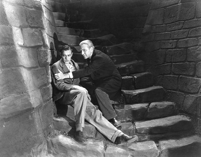 Frankenstein bedeutete freilich den Durchbruch für den damals 44jährigen Boris Karloff. Geboren 1887 als William Henry Pratt hatte der indischstämmige Engländer zuvor bereits achtzig Filme gedreht, mit teils nur sehr kleinen Parts. Die Verkörperung des sprachlosen, verzerrten „Monsters“ änderte Karloffs Karriere komplett. Die Kreatur hat jetzt nicht unbedingt so viel Screentime in einem ohnehin eher kurzen Streifen, doch Karloff gibt ihr hinter der ikonischen Maske eine (geschundene) Seele. Da der Darsteller jetzt nicht (wie man vermuten würde) sehr groß war (1,81 m) musste er schwere, hohe Schuhe tragen, die seine Aufgabe nicht unbedingt erleichterten. Karloff spielte seine bekannteste Rolle noch zwei weitere Male, in Frankensteins Braut (1935) und Frankensteins Sohn (1939). 1932 war er als Imhotep in Die Mumie zu sehen, ein Jahr später fungierte er als Mitgründer der amerikanischen Schauspielergewerkschaft Screen Actors Guild (SAG). Auch Hauptdarsteller Colin Clive, der als Henry Frankenstein (die Romanfigur heißt Victor) auch in Frankensteins Braut zu sehen war, liefert eine starke Performance als vom Schöpferdrang an den Rand des Wahnsinns getriebenen Wissenschaftler. Clive verstarb sechs Jahre nach der Veröffentlichung des vorliegenden Werkes viel zu früh mit nur 37 Jahren. Mae Clarke, von welcher im gleichen Jahr noch fünf weitere Streifen in die Kinos kamen, gab Elizabeth, die besorgte Verlobte Frankensteins. Edward Van Sloan, auch Prologsprecher, scheint aus meiner Sicht hier weitgehend seinen Part als Professor Van Helsing aufzuwärmen, wenngleich sein Professor Waldman etwas weniger zu tun hat.