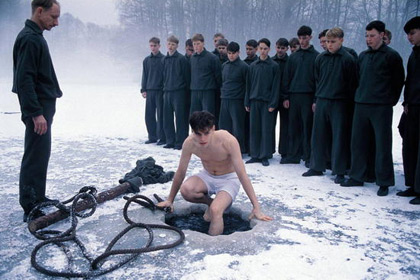 Die Schüler müssen unter dem Eis durchschwimmen.