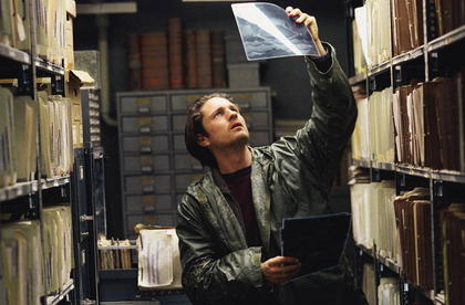 Noah durchforstet das Archiv einer Klinik auf der Suche nach verwertbaren Infos über das Mädchen.
