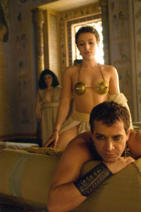 Und last but not least: Cleopatra. Die ägyptische Königin gehört zu den schillernsten Persönlichkeiten der Antike. Bereits in Staffel 1 war sie in einer Folge zu sehen, in der zweiten Season hat sie mehr Screentime. Die Rolle ist hier weniger als große Schönheit als vielmehr zierliche und charmante Frau (mit auffallenden Kostümen!) angelegt. Mit Caesar hat Cleopatra einen illegitimen Sohn. Nach seinem großen Krach mit Octavian flüchtet sich Marcus Antonius zu ihr. Die beiden beginnen eine ausschweifende Liebesbeziehung.