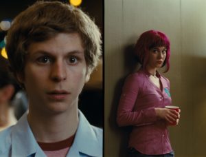 Hinsichtlich der grundlegenden Konstellation wandelt die amerikanisch-kanadisch-britisch-japanische Co-Produktion auf den Spuren unzähliger Romantik- oder Beziehungs-Komödie, in deren Verlauf der Protagonist und seine Angebetete erst große Hindernisse überwinden müssen, bevor sie zusammenkommen. Nur dass hier freilich alles herrlich überzeichnet wird und zudem die Grenzen zwischen realistischer Wirklichkeit und Fantasiewelt die ganze Zeit über völlig offen sind. Auch im Film werden die typischen Charakteristika des Mediums Comic zelebriert. So dienen Texteinblendungen zur Vorstellung der Figuren oder Onomatopoesie veranschaulicht Geräusche. Sehr abrupt gestalten sich die Szenenwechsel, vor allem wenn unser Held mal wieder vor sich hinträumt. Auch die fast omnipräsente Musik wird visuell dargestellt. Und nicht zu vergessen: die im besten Beat-Em-Up-Stil gehaltenen Kampfszenen mit Manga-typischer Stilisierung.