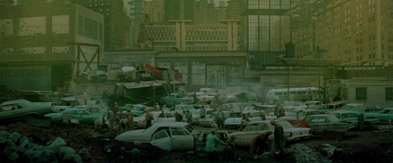 Das Setting präsentiert sich von Beginn an als heruntergekommen, dreckig und trostlos. New York (welches in der Realität aktuell „nur“ etwa 8 Millionen Einwohner hat) erweist sich als hemmungslos überfülltes Moloch in erbärmlichem Zustand. Die unzähligen Menschen ohne Wohnraum liegen auf der Straße oder in den Hausfluren und Treppenhäusern. So muss Protagonist Thorn jedes Mal wenn er seine bescheidene Bleibe verlässt über Menschentrauben steigen. Die Verteilung der knappen Nahrung ist streng limitiert, nicht selten kommt es bei den Essensausgaben zu Unruhen. Neben natürlichem Essen wie Gemüse, Früchte und Fleisch fehlt es auch an Wasser, Strom und für uns selbstverständlichen Gebrauchsgegenständen wie z.B. Papier. Im krassen Gesatz zur grassierenden Armut leben die wenigen Reichen. Diese können sich luxuriöse Wohnungen oder Häuser mit fließendem Wasser, Strom, Klimaanlage und mehr leisten. Auch Frauen haben die Wohlhabenden zur Verfügung. Diese werden als „Inventar“ (im Englischen „furniture“) bezeichnet, weil sie zur jeweiligen Wohnung gehören und jedem Besucher „zur Verfügung stehen“. Für Thorn ist es völlig normal, dass er aus dem teuren Appartment des Mordopfers diverse Dinge mitgehen lässt und zärtliche Stunden mit Shirl, dem „Inventarmädchen“, verbringt.
