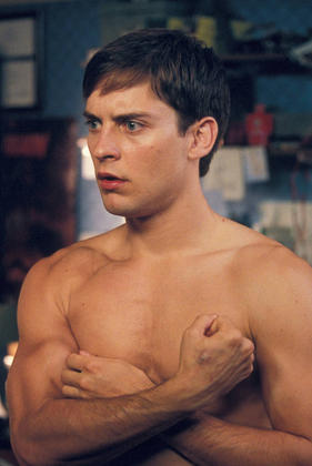 Kurz vor seinem Schulabschluss besucht der wissenschaftlich interessierte und begabte Schüler Peter Parker (Tobey Maguire) mit seiner Klasse ein Museum in New York, bei dem die unterschiedlichsten Spinnen ausgestellt sind. Beim Fotografieren wird Peter von einer genetisch veränderten „Superspinne“ gebissen. Zuerst fühlt er sich nur müde und legt sich schlafen. Als Peter jedoch wieder erwacht, bemerkt er Veränderungen an sich: Seine Sehschwäche ist verschwunden und aus dem Nichts haben sich Muskeln aufgebaut (Bild links). Außerdem kann er durch winzige härchenartige Fühler, die aus seinen Händen und Füßen wachsen an Wänden hochklettern. Nach einiger Zeit schießen wie auf Knopfdruck Spinnweben aus seinen Handgelenken, die anfangs nicht immer das tun, was sie sollen. Nach einer eher unfreiwilligen Schlägerei mit dem Freund seiner Angebeteten und Nachbarin Mary Jane Watson (Kirsten Dunst), erkennt Peter, dass er jetzt nicht mehr ganz der belächelte Außenseiter ist. Der Tod seines Onkels und Ziehvaters Ben (Cliff Robertson) setzt Peter und seiner Tante May (Rosemary Harris) schwer zu. Als er den schuldigen Täter stellt, wird Peter klar, dass er ein neue Weg vor ihm liegt. Von nun an kämpft er als Spider-Man gegen Unrecht und Verbrechen. Einen ersten ebenbürtigen Gegner hat Spidey dann auch schon mit dem Grünen Kobold (Willem Dafoe), dem durch einem mit leistungsteigerndem Gas misslungenen Selbstversuch entstandenen, bösen Alter Ego des reichen Industriellen Norman Osborn. Norman ist der Vater von Peters bestem Freund Harry (James Franco) und für Peter vor allem in finanzieller Hinsicht schon dagewesen. Nachdem der Kobold auf seinem ersten öffentlichen Auftritt fast Mary Jane tötet und die ungeliebte Vorstandsetage von Osborns Konzern über den Jordan schickt, ist Spider-Man einmal mehr gefordert. Unglücklicherweise kommt der grüne Kobold hinter das Geheimnis von Spider-Mans wahrer Identität.