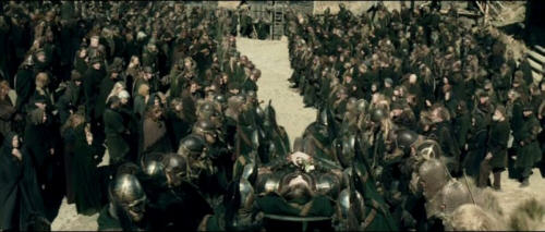 Der Aufbruch der Bewohner von Edoras nach Helms Klamm ist ebenfalls ein klein wenig verlängert. Die erste Begegnung mit Faramir liefert wieder einen besonders buchnahen Moment. Mit der