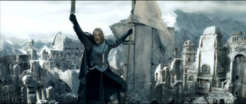 es sich, diese Stelle mal in der englischen Originalfassung anzuhören. Die nächsten neuen Bilder zeigen wie Aragorn das Pferd Brego zähmt und damit zum ersten Mal Éowyn beeindruckt.