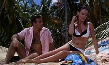 Von Film zu Film entwickelt Sean Connery den James Bond, wie wir in heute kennen, zum Gentleman und Macho zugleich. Lockere und ab und zu selbst aus heutiger Sicht „verwerfliche“ Sprüche unterstreichen dies. Aber: Auch ein James Bond kann verführt werden. So tappt er in die Falle, als Fiona Volpe (Luciana Paluzzi), Mitglied des „Phantom“, ihre Netze auswirft und Bond ohne Probleme abschleppt. Dass aber nach der heißen Verführung im Hotel die Verhaftung durch ihre Handlanger ansteht – damit hat Bond keineswegs gerechnet. Seine berühmte „Waffe unter dem Kopfkissen“ hilft ihm da auch nicht weiter und so kommentiert er seine Niederlage mit: „Berufsrisiko“.