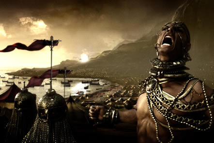 Eine wirklich ausgewogene Story besitzt der Film nicht, was man vor allem in der zweiten Hälfte bemerkt, als die Perser nacheinander verschiedenes Getier wie Kriegselefanten, gepanzerte Nashörner oder entstellte Mutanten auf die Gegner loslassen. Diese Szenen wirken fast zusammenhanglos aneinandergereiht. Da hilft auch nicht die Rahmenhandlung mit David Wenham („Der Herr der Ringe„) als Erzähler Dilios, der sich immer wieder in das Geschehen einschaltet und vor allem die Beweggründe von Leonidas (Gerard Butler, u.a. „Das Phantom der Oper“, „Beowulf„) und das spartanische Gedankengut erläutert. Die ohnehin schon hemmungslos stilisierten Bilder werden noch durch die pathetisch-trashigen Dialoge und die überzogene Musik von Tyler Bates gesteigert, wodurch manche Szenen fast ins Groteske abdriften.