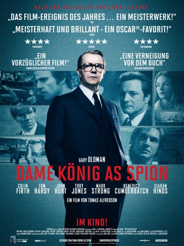 Mit George Smiley erfand der britische Bestsellerautor und ehemalige Geheimagent John le Carré (geboren 1931) eine Figur, die in acht seiner Spionageromanen wie Der Spion, der aus der Kälte kam oder Dame, König, As, Spion auftritt. Letzteres Buch wurde bereits 1979 als britische Miniserie mit Sir Alec Guinness in der Hauptrolle verfilmt. Etwa dreißig Jahre später kam eine Kinofilmadaption ins Rollen. Regie führte der Schwede Tomas Alfredson (So finster die Nacht). Die Produktion ist mit Gary Oldman (The Dark Knight), Oscar-Preisträger Colin Firth (The King’s Speech), Ciarán Hinds (München), Mark Strong (Sherlock Holmes, 2009), Toby Jones (Captain America) sowie John Hurt (Alien, 1984) mit erfahrenen und renommiertesten britischen Schauspielern besetzt. Dazu kommen die beiden jüngeren Stars Benedict Cumberbatch (Titeldarsteller der Serie Sherlock) und Tom Hardy (Inception).