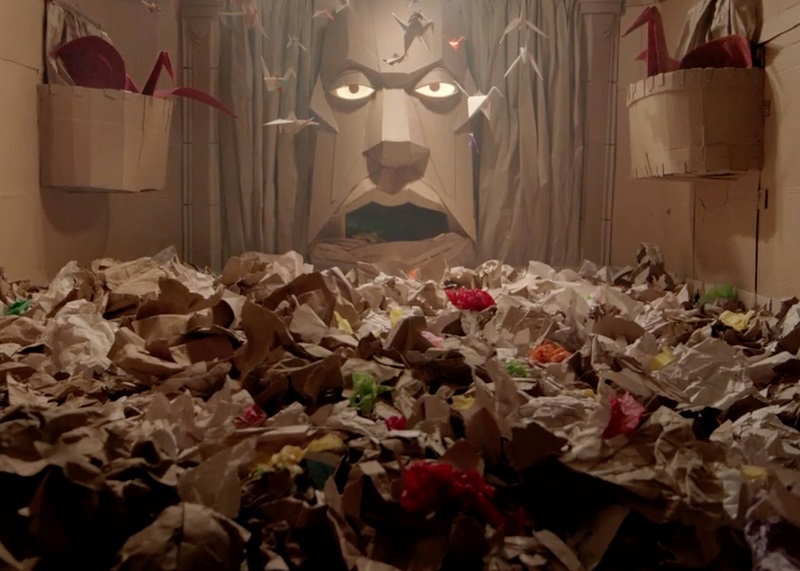 Bei der deutschen Uraufführung des Films auf dem 44. Internationalen Filmwochenende Würzburg am 26. Januar 2018 wurde von dessen Entstehungsgeschichte erzählt. Die Dreharbeiten dauerten sechs Wochen und fanden in einem ganz kleinen Studio ins Los Angeles statt, welches sich neben einer Bekleidungsfabrik befindet. Aus dem Altpapier und Verpackungsmaterial der Firma wurden die Sets gebaut. Wider Erwarten war der Kartonvorrat schon nach drei Wochen verbraucht, die Firma allerdings nicht mehr bereit, weiteren „Abfall“ zur Verfügung zu stellen. Bei einem ebenfalls benachbarten Solaranlagen-Unternehmen fand die Filmcrew weiteres Kartonmaterial in ausreichender Menge. Wegen der geringen Größe des Studios konnten immer nur zwei Kartonräume gleichzeitig aufgebaut werden. Während der Dreharbeiten in einem Raum wurde zeitgleich am anderen gewerkelt. Nach Drehschluss gingen die verwendeten Kartonmaterialien zurück an die Unternehmen und wurden ordnungsgemäß recycelt.
