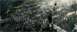 Bereits früh erwies sich der Ansatz von Peter Jackson und seinem Autorenteam (bestehend aus Ehefrau Fran Walsh, Philippa Boyens und dem ursprünglich als Regisseur vorgesehenem Guillermo del Toro) bei der Adaption von Der Hobbit für die große Leinwand als unverhältnismäßig. Aus dem ca. 300 Seiten-Buch machten sie das gleiche wie aus dem über 1000seitigen Ringepos, nämlich eine Filmtrilogie. Beim ersten Teil Eine unerwartete Reise führte das zu einer äußerst ausführlichen und bisweilen recht zähen Exposition. In Smaugs Einöde wurde jedoch zugunsten von überflüssigen Nebencharakteren und -kriegsschauplätzen die Haupthandlung sträflich vernachlässigt. Für den letzten Teil kann aber Entwarnung gegeben werden. Die Schlacht der Fünf Heere bietet genau was der Titel verspricht und bringt die unerwartet lange Trilogie zu einem angemessenen Ende.