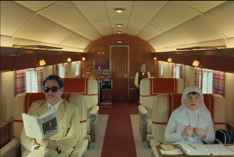 Schon seit Jahren habe ich mich als Kinozuschauer von dem „Dogma“ entfernt, dass ein guter Film eine bis ins kleinste Detail ausgearbeitete Geschichte benötigt. Aber was Anderson, dessen letzter Streifen Asteroid City mich ebenfalls eher gelangweilt zurückließ, hier inhaltlich veranstaltet ist dann doch sehr dürftig. Die überaus dünne Story dient nur als loser Aufhänger, um von einem detailverliebten Setpiece zum nächsten zu jagen. Als Caper mit möglicher Kritik am oder Satire auf den Kapitalismus wirkt die ganze Angelegenheit zu zahnlos und unspannend, auch weil sich die meisten Wendungen sehr beliebig gestalten. Interesse an seinen drei Hauptfiguren (Korda, seine Tochter und der mitreisende Insektenkundler) scheint Anderson auch nicht wirklich zu haben, sonst wären diese nicht so schablonenhaft gezeichnet. Aber immerhin erhalten Benicio del Toro (Traffic, The French Dispatch) als Protagonist, Mia Threapleton (The Buccaneers) als Liesl und Michael Cera (Scott Pilgrim gegen den Rest der Welt) als Bjørn teilweise Gelegenheit, ihren flachen Charakteren ein bisschen Leben einzuhauchen. Von den unzähligen anderen, überwiegend sehr namhaften Darsteller*innen, die teilweise kaum eine Minute zu sehen sind und als prominente Statisten verheizt werden, kann man das leider nicht behaupten.