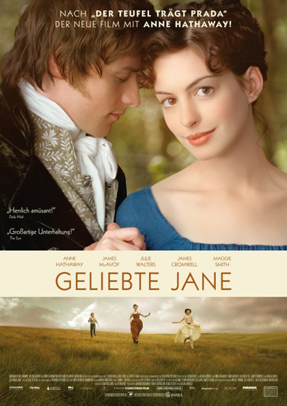 Die Skepsis bezüglich historischen Genauigkeit mal beiseite: Geliebte Jane ist ein ruhig erzählter, unterhaltsamer und einfach schöner Film. Anne Hathaway spatziert in wunderschönen Kleidern durchs ländliche England, schreibt ihren ersten Roman, tröstet ihre Schwester, führt intelligente Streitgespräche über Gesellschaft und Literatur und schmettert dazwischen ein paar Heiratsanträge ab. James McAvoy steht daneben und sieht phantastisch aus. Da der Name Jane Austen stets wie eine Fruchtfliegenfalle für Schauspielgrößen wirkt, darf man sich in den Nebenrollen unter anderem über Maggie Smith, James Cromwell und Julie Walters freuen.
