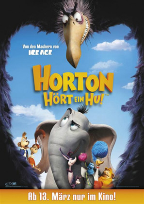 Horton hört ein Hu! ist das neueste Animationswerk der 20th Century Fox Animation, aus deren Schmiede schon Robots und die beiden Ice Age-Filme stammen. Wie schon in diesen beiden funktioniert auch hier die Mischung aus viel Komik, etwas Moral und skurrilen Figuren, sodass sowohl Kinder als auch Erwachsene voll auf ihre Kosten kommen. Da es im Film zwei Welten gibt, gibt es mit Horton und dem Bürgermeister zwei Protagonisten, die ein ähnliches Schicksal teilen: sie werden von ihrer Umwelt als unzurechnungsfähige Spinner abgetan, denen man nicht glaubt und die ständig zurechtgewiesen werden. Bei Horton ist dafür selbstverständlich das Känguru verantwortlich, die aus diesem Grund auch ihr Kind nicht in Hortons kleinen Dschungel-Kindergarten lässt und darüber hinaus auch die anderen Mütter verunsichert. Der Bürgermeister wiederum muss seine Befürchtungen anlässlich der Veränderungen, die in Hu-Heim vor sich gehen, vor den Stadtrat bringen, der jedoch nichts Wichtigeres als Hu-Heims Hundertjahrfeier im Kopf hat und das Anliegen des Bürgermeisters ebenso in den Wind schlägt wie das Känguru Hortons Idee von winzigen Welten.