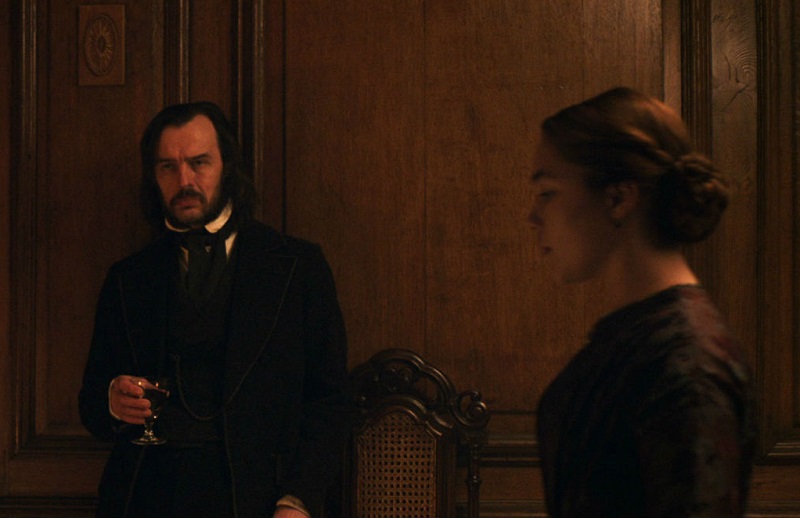 Aus so einem Stoff hätten andere Regisseur sicherlich einenn theatralisch-intensiven und wendungsreichen Film gemacht. Nicht so William Oldroyd, der nach mehreren Jahren als Theaterschaffender und drei Kurzfilmen mit Lady Macbeth sein Langfilmdebüt gab. Basierend auf einer russischen Novelle reduziert nicht nur das Drehuch von Alice Birch die ganze Geschichte auf ein notwendiges Minimum. Auch die Inszenierung könnte spärlicher nicht sein. Wo sollte sich die Handlung sonst abspielen, als in einer völlig schmucklosen Herrenhaus mitten in einer von kargen Wäldern und farblosen Panoramen durchsetzten englischen Ödnis? Dazu wird das Geschehen in überaus langen Takes bei einer höchst statischen Kameraführung eingefroren. Viele Szenen wirken wie sich nur geringfügig bewegende Gemälde aus einer Epoche der biederen Farblosigkeit. Musikalische Untermalung gibt es fast gar keine. Vermutlich gab es zuletzt mit Sleeping Beauty (2011) einen derart karg inszenierten Film.