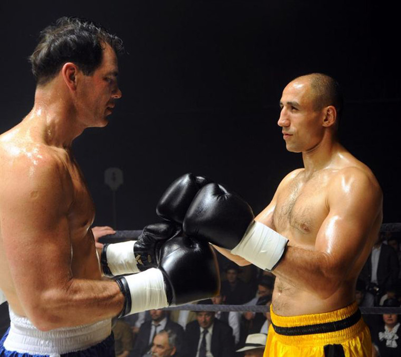 Der deutsche Boxer Arthur Abraham (rechts) spielt Schmelings letzten Gegner Richard Vogt.
