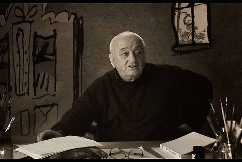 Gabriadze senior erzählt die Geschichte selbst, ist zwischenzeitlich immer wieder in aktuellen Schwarzweiß-Aufnahmen zu sehen, die dem Zuschauer als Anker dienen. Denn die in wunderschön-kindlichem Stil gehaltene Zeichentrickhandlung überwindet häufiger die Grenze zwischen Realität und Fantasie, etwa wenn historische Persönlichkeiten aus ihren Bildern springen, Zeitungen ein Eigenleben entwickeln oder sich der kleine Held mit einem übergroßen Frosch anfreundet. Diese einfallsreichen und märchenhaften Abstecher verleihen der ganzen Geschichte einen eigenwilligen Charme zwischen kindlicher Fabulierlust und nostalgischer Verklärung. Am Ende erfährt man wie Rezo dazu kam, sein erstes Werk zu schaffen und welche positiven Auswirkungen es hatte. Ich wiederum bin um die Erfahrung eines ungewöhnlichen Zeichentrickfilms reicher und habe etwas über einen großen georgischen Künstler gelernt.
