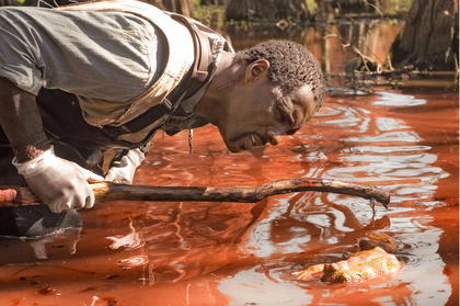 Ein schreckliches Bild präsentiert sich den Wissenschaftlern: Blutiges Wasser, verendete Fische.