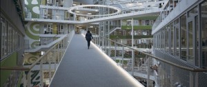Architekten diskutieren die Vorteile eines neuen hypermodernen Bürogebäudes. Schließlich bekommt man das neue Bauwerk von innen zu sehen. Es folgen diverse Panoramen und Kamerafahrten durch die riesigen Büroflure. Leises Tastatur-Geklapper, diverse Telefone klingeln, Gespräche im Hintergrund. Unternehmensberater interviewen Mitarbeiter.