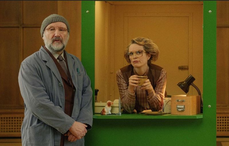 Was Ästhetik und Kulissen angeht bewegt sich die Leben-nach-dem-Tod-Comedy irgendwo zwischen den symmetrischen Bildkompositionen eines Wes Anderson und den absurd-undurchdringlichen Verwaltungsmaschinerien eines Franz Kafka. Nur dass Grimm und sein Co-Autor Fabian Krebs hier inhaltlich wesentlich mehr bieten als der immer langweiligere Anderson in seinem letzten Werk Der phönizische Meisterstreich. Wobei Zweigstelle vor allem in emotionaler Hinsicht zu wünschen übrig lässt. Die Gefühlswelt der Protagonistin Resi bleibt insgesamt zu unterentwickelt.