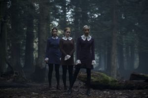 Referenzen, egal ob zu Filmen, Serien oder Büchern, sind total hip bei der heutigen Jugend, dachte sich Netflix. Und so tummeln sich in den Chilling Adventures unzählige Verweise auf Genre-Werke unterschiedlichster Art, die vermutlich jene „Nerds“ abholen wollen, die eher zufällig mal reinschauen. Doch leider liefert die Show nur Zitate zum Selbstzweck und nichts dahinter. Bezeichnenderweise passt das aber wunderbar in die oberflächliche Ausarbeitung der Drehbücher, frei nach dem Motto: möglichst viel Stoff, aber wenig Inhalt in zehn Episoden packen. Eine geheimnisvolle Hexenakademie, drei hinterhältige Bitches Witches, ein charismatischer Patriarchenpriester und eine teuflische Strippenzieherin. All das und noch viel mehr gibt es allein in der ersten Staffel der Chilling Adventures. Da verpuffen die guten Ansätze, etwa Verarbeitung historischer Ereignisse bezüglich der Hexenverfolgung in Amerika, leider recht schnell, obwohl man sich Abgründigkeit auf die Fahnen geschrieben hat und diese mit Themen wie Kannibalismus und anderen menschenverachtenden Praktiken auch einigermaßen konsequent durchzieht. Die Netflix-Produktion möchte eine hippe Mixtur aus Harry Potter, Buffy – Im Bann der Dämonen und Penny Dreadful sein, verhält sich zu letzterer Show allerdings wie The Shannara Chronicles zu Game of Thrones.