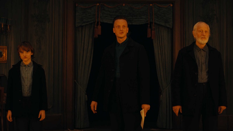 Inszenatorisch bleibt Dark auf hohem Niveau, auch weil die Musik vom Australier Ben Frost weniger auf die teils überzogenen Streicher-Crescendi setzt. Erneut wird dank toller Locations die (teils postapokalyptisch-) trostlose Kleinstadt Winden zum Leben erweckt, wo es scheinbar (vor allem um 1888) fast nur regnet. Auch die unterschiedlichen Jahrzehnte werden gekonnt ins Szene gesetzt. Leider übernahm man aus dem Vorjahr auch die Unsitte, immer wieder Montageszenen einzustreuen. Das mag in wohldosierte Form ein probates Stilmittel sein, aber wirklich fast jede Folge nervt es irgendwann. Und auch die mit Abstand größte Schwäche kann Dark auf der Abschiedstournee nicht ablegen: die redundanten, albernen und peinlichen Dialoge, welche zu den unverkennbaren Markenzeichen der Serie gehören. Mit der von Barbara Nüsse (Großstadtrevier, Die Pfefferkörner) gespielten Eva gibt es eine neue Figur, die betulich-bedeutungsschwanger rumlabern darf, vom Ursprung des Knoten, der Apokalypse, der Verbindung beider Welten, Anfang, Ende, blablabla. Natürlich erweist es sich als richtig, elementare Details der Handlung durch Dialoge zu erläutern, doch irgendwie wirkte das Ganze auf mich zu „übererklärt“. Frei nach dem Motto: „Show, don’t tell“ ist gut, aber show and tell and tell and tell…“ ist noch besser. Ist es aber nicht.