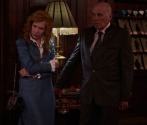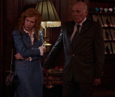 Das Sahnehäubchen auf diese genüssliche TV-Film-Torte bilden allerdings die prominenten Nebenakteure. Hannelore Elsner (Die Kommissarin) als lilahaarige, dominante Mama Else und Lena Urzendowsky (Dark) als schüchterne Assistentin verkörpern die beiden Gegenpole zu Moshammer während die Schweizerin Sunnyi Melles (Das Adlon. Eine Familiensaga) und der aus Franken stammende Hanns Zischler (München) dürfen als Rudolphs Geldgeber herrlichst in ihren jeweiligen „Muttersprachen“ schwätzen. Am meisten hat mich allerdings Robert Stadlober (Mackie Messer – Brechts Dreigroschenfilm) in seiner Doppelrolle als die grundverschiedenen, adeligen Zwillingsbrüder Dudu und Funki (!) überrascht. Was für ein Spaß!