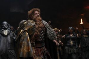 Ich persönlich finde es irgendwie etwas kurios und merkwürdig, das wir es hier „nur“ mit einer Serie zu tun haben, denn die epischen Bilder verlangen eigentlich danach, Die Ringe der Macht auf einer großen Leinwand zu sehen. Dank des wohltemperierten Einsatzes von Computer-Animationen wirkt die Optik auch lange nicht so künstlich wie es beim Hobbit-Dreiteiler über weite Strecken der Fall war. Vielmehr setzte man verstärkt auf „echte“ Kulissen und Make-Up-Effekte, was für einen plastischeren Look sorgt. Auf visueller Ebene wird der Unterschied zwischen den einzelnen Völkern gut herausgearbeitet, etwa wenn den leuchtenden Elbenreichen die eher schmucklose Welt der Menschen in den Südlanden gegenübergestellt wird.