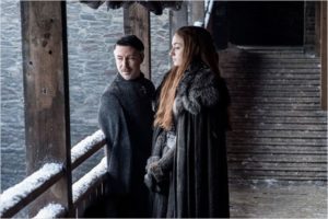 Das grundlegende Problem ab Staffel 5 könnte vermutlich sein, dass George R.R. Martin die beiden noch ausstehenden Bände der Romanreihe immer noch nicht (fertig)geschrieben hat, und das sechs Jahre nach Veröffentlichung des fünften Buches A Dance With Dragons. Auch wenn der 69jährige den Showrunnern/Chefautoren David Benioff und D.B. Weiss die wichtigsten Details der noch unvollendeten Saga enthüllt hat, so fehlt es der TV-Adaption an einer fundierten erzählerischen Grundlage, was den weiteren Verlauf der Serienhandlung zu einer Art Fanfiction „degradiert“. Vor allem erweisen sich die Wendungen teilweise als recht vorhersehbar. Im Grunde werden hier wichtige Geheimnisse und Ereignisse fast genau enthüllt wie sie die Schar der treuen Anhänger vorhergesehen bzw. seit Jahren erwartet hat, was den Reiz des Unbekannten (also der Handlung jenseits der veröffentlichten Romane) mindert. Vielleicht geschieht die inhaltliche Reduzierung mit dem Schwerpunkt auf große (Action-)Highlights aber auch aus dem Kalkül der Serienmacher, um den Fans die noch kommenden Bücher der Reihe schmackhaft zu machen.