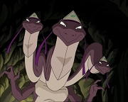 Irgendwie fühlt man sich als Mythen-Freak zwischen zwei Stühlen. Man möchte einerseits wissen, wie verschiedene Teile des Homer-Epos umgesetzt werden, andererseits schreckt man vor den Peinlichkeiten in der Umsetzung zurück. So hat z. B. der Zyklop Polyphem ein „magisches“ Auge, das er auch als Taschenlampe benutzt! Das Monster Skylla ist ein dreiköpfiger Dinosaurier, der sprechen kann und ein wenig wie Elliott das Schmunzelmonster aus dem gleichnamigen Disney-Film aussieht.