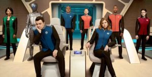 Lediglich zwei Wochen vor Discovery premierte im September 2017 eine Produktion mit sehr ähnlicher Ausgangslage. Doch während die jüngste Star Trek-Serie eher auf dunklen Pfaden wandelt, entpuppt sich The Orville als humoristische Hommage an das vor über 50 Jahren von Gene Roddenberry (1921-1991) ins Leben gerufene Mega-Franchise, die zu keiner Zeit als bloße Veralberung fungiert. Bisher hat sich der US-Amerikaner Seth MacFarlane (geb. 1973) nicht nur als Schauspieler einen Namen gemacht, sondern auch als (Mit-)Erfinder und Originalsprecher der animierten Comedyserien Family Guy, American Dad! und The Cleveland Show. Darüber hinaus inszenierte der 44jährige auch die Spielfilme Ted, A Million Ways To Die In The West und Ted 2.